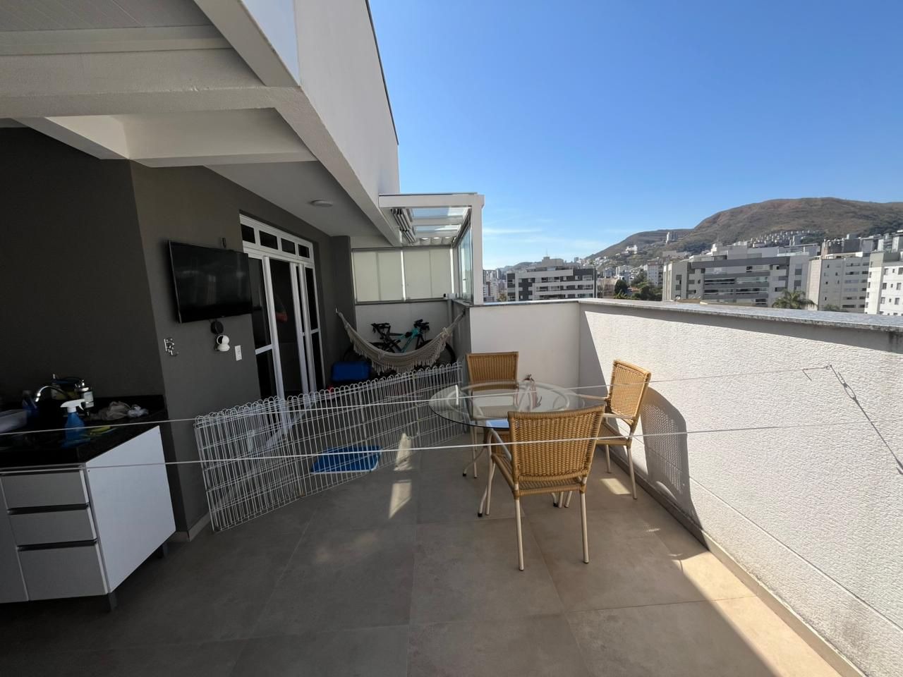 Cobertura residencial em Belo Horizonte (Buritis) com 120 m² de área interna, 3 quartos (1 suíte), 2 banheiros, sala ampla, varanda não possui. Acabamento em porcelanato, mobiliada, ar-condicionado, área de serviço e armários em vários ambientes. Possui 2 vagas de garagem, vista para montanha e posição de fundo. Características adicionais: espaço gourmet, academia, playground, interfone, circuito de TV, gás canalizado e escrtório. Aceita financiamento e permuta. Localização estratégica próxima a referência 1 (imóvel de alto padrão com acabamento e infraestrutura completa). Valor de venda: R$ 890.000,00.